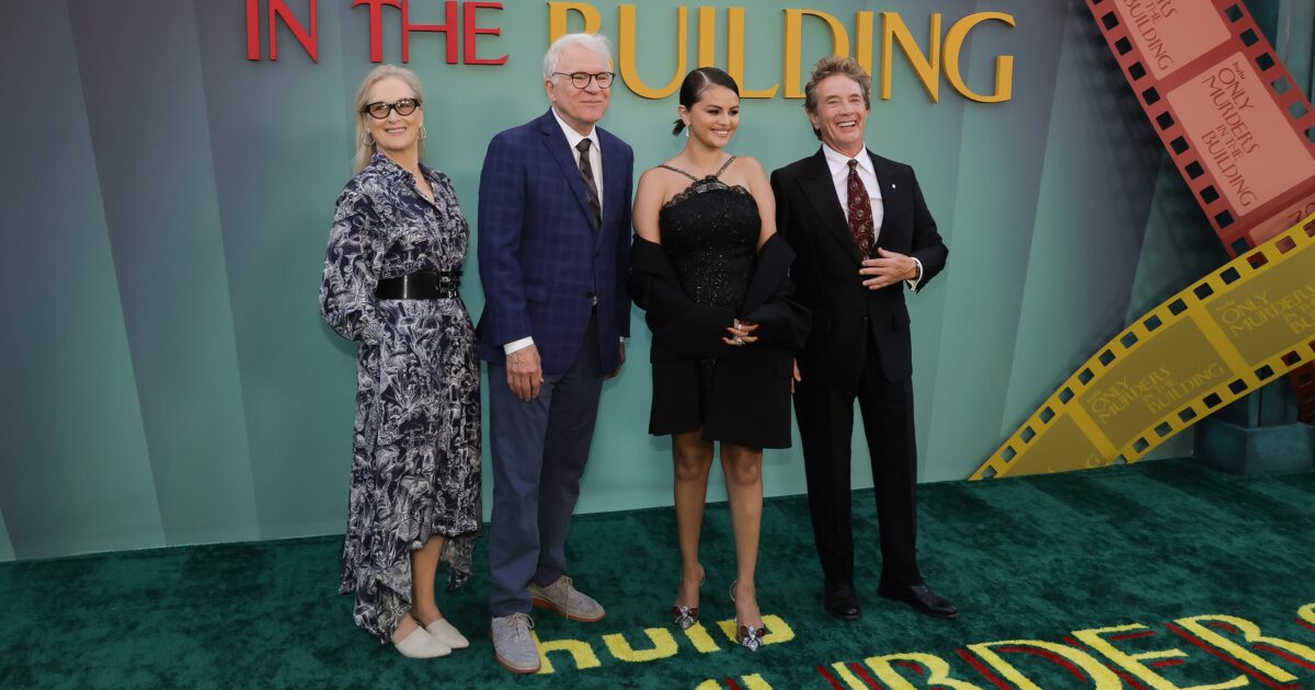 At the end of season 4, our trio of podcasters-turned amateur detectives Charles (Steve Martin), Oliver (Martin Short), and Mabel (Selena Gomez) found the body of the Arconia’s beloved doorman Lester (Teddy Coluca) floating in the blood-filled courtyard fountain. Though the grim discovery comes on the heels of Oliver’s wedding to Loretta (Streep), the three friends quickly get down to investigating in the beginning of season 5—particularly after Lester’s murder is inexplicably ruled accidental.